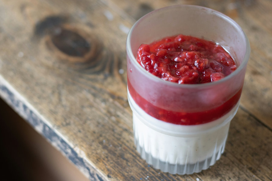 Kleine Gläschen gefüllt mit Schoko-Mousse, Panna Cotta oder Fruchtjoghurt